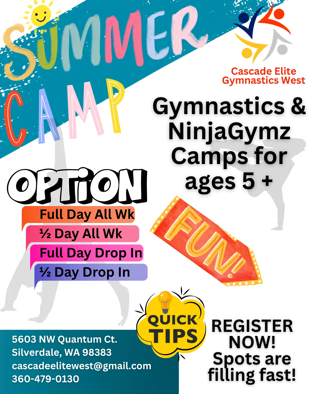 - Includes gymnastics, ninjaGymz, crafts, games, and more!